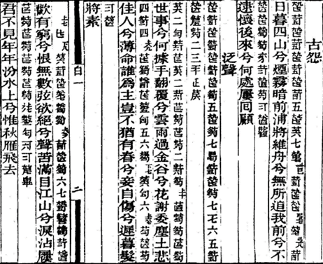 The full title of Guyuan is usually given as Baishi Daoren Gequ Gu Yuan (Ancient Lament, from Songs of the Whitestone Daoist, 1202 CE).[21] Guyuan is the earliest ci written with Jianzipu, and it has become one of the most valuable documents in studying music in the Song dynasty. The songs by Jiang Kui, with both the text and music preserved, reveal some interesting principles behind musical composition of his time.[22]